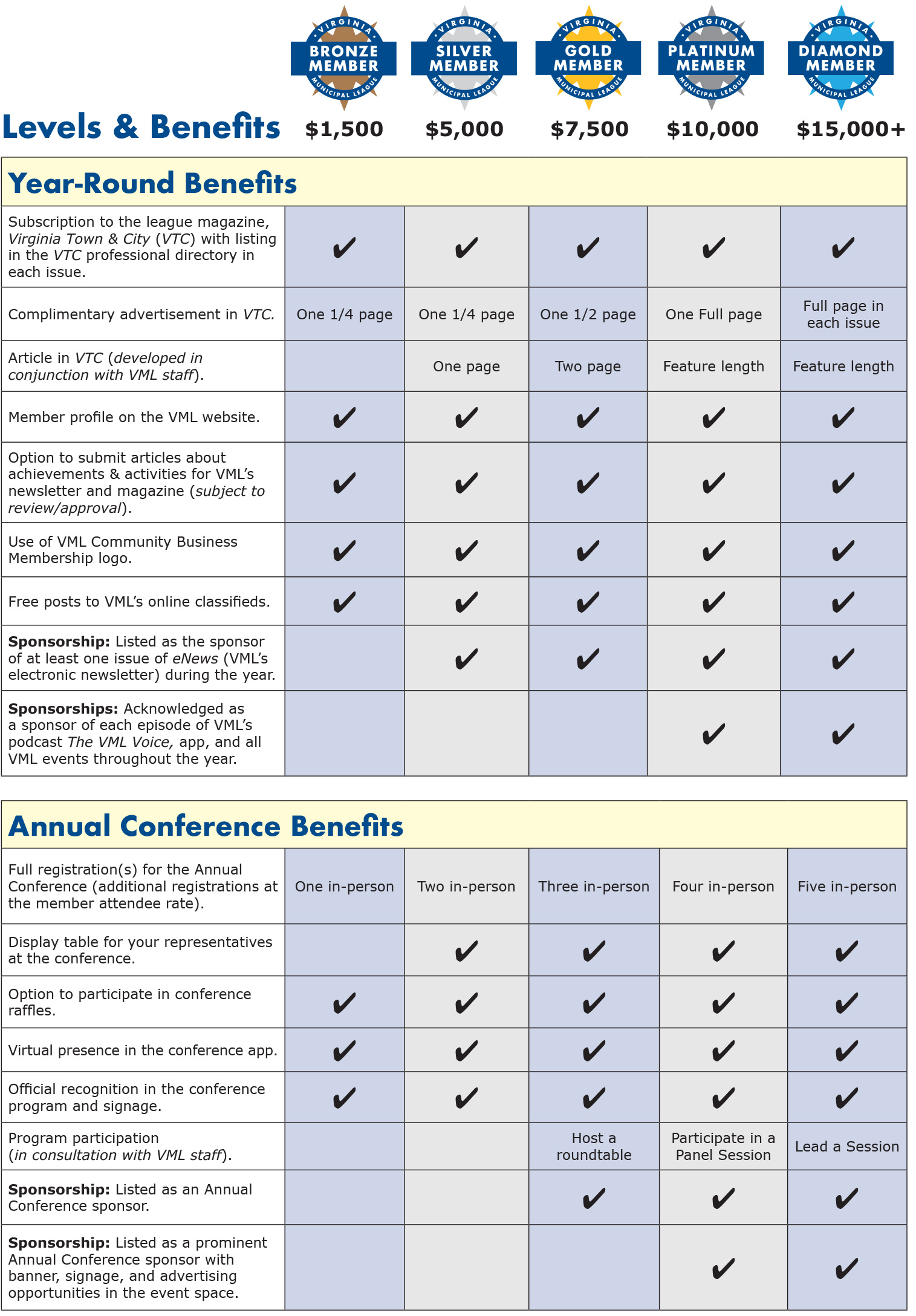 Set your organization apart in the local government marketplace of product, services, and ideas by joining the VML Community Business Membership (CBM) program. As a CBM organization you hold a sustaining membership in VML and keep your firm or organization connected with the issues that are important to municipalities around you. Being a CBM places your organization at the forefront in the minds of VML members, ensuring you the visibility, access, and awareness that will help move your organization forward.