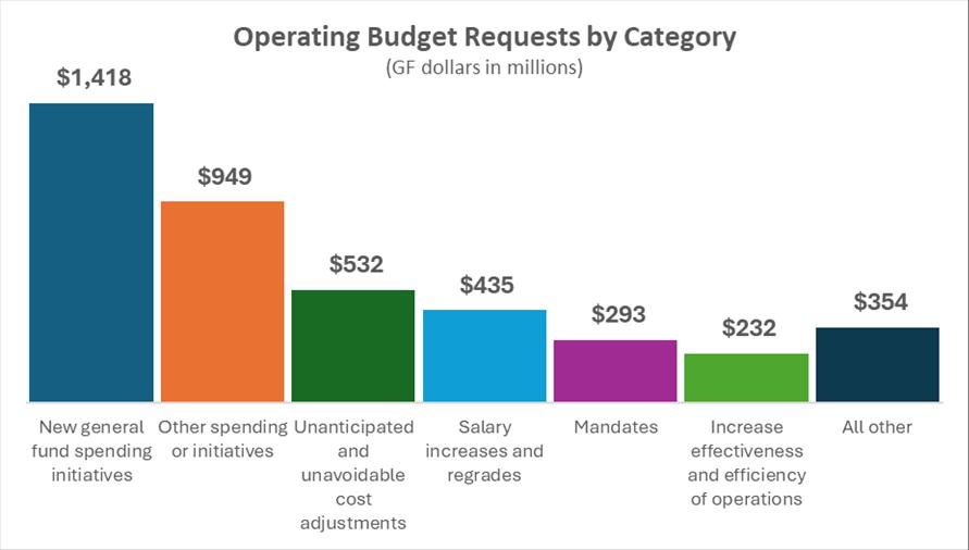 The table below illustrates how state agencies categorized their budget requests that were submitted to the Department of Planning and Budget.
