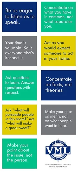 The Virginia Municipal League and its Board of Directors support restoring civility in government as a top priority. Leadership on this issue is something we take very seriously.